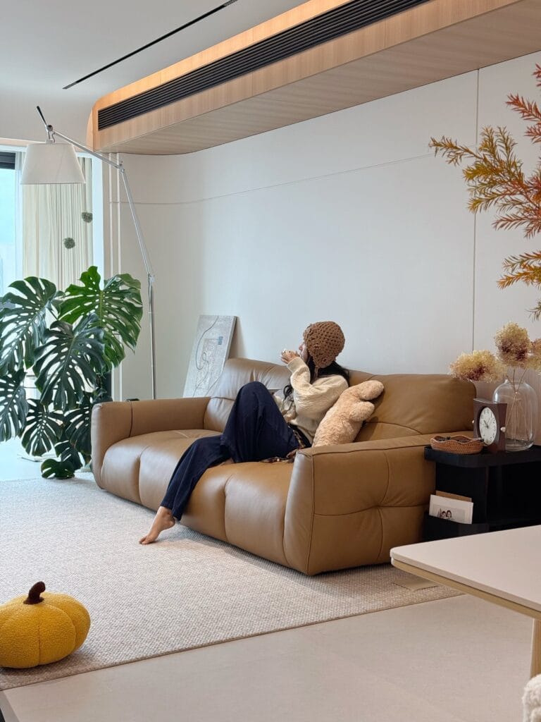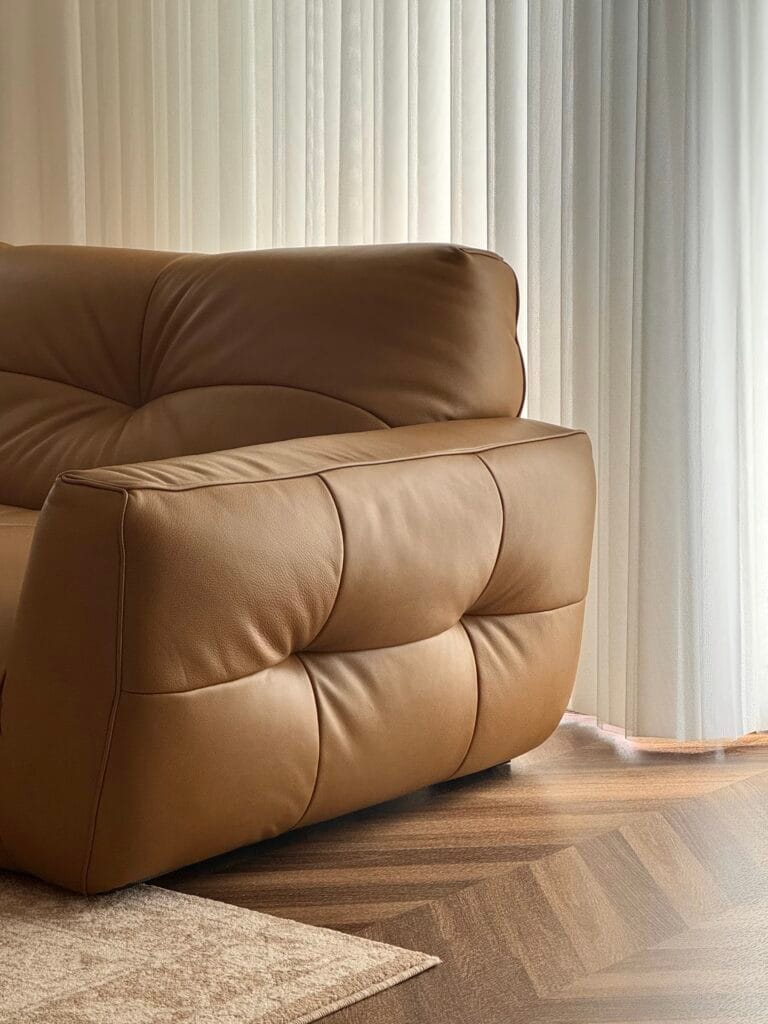 - “Chocolate Block” Silhouette: The sofa’s segmented design mirrors the neat arrangement of chocolate pieces, creating a familiar yet novel visual rhythm. Each “block” is defined by subtle lines, evoking the satisfaction of a perfectly crafted chocolate bar.
