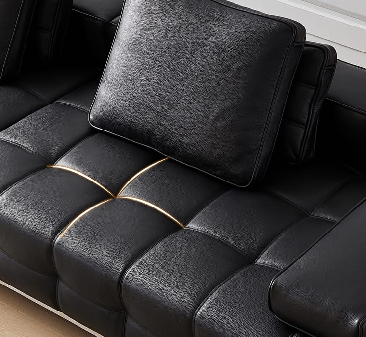 A critical distinction between the Lawrence Sofa and many luxury competitors is its 100% Full Genuine Leather construction – no matching leather or synthetic inserts are used. The matching leather refers to the practice of using genuine leather on visible surfaces (like seat cushions and backrests) and cheaper materials (like split leather or vinyl) on hidden areas (like the undersides of cushions or the back of the sofa). While this reduces costs, it compromises durability and value: split leather is thinner and more prone to tearing, and vinyl can peel over time.