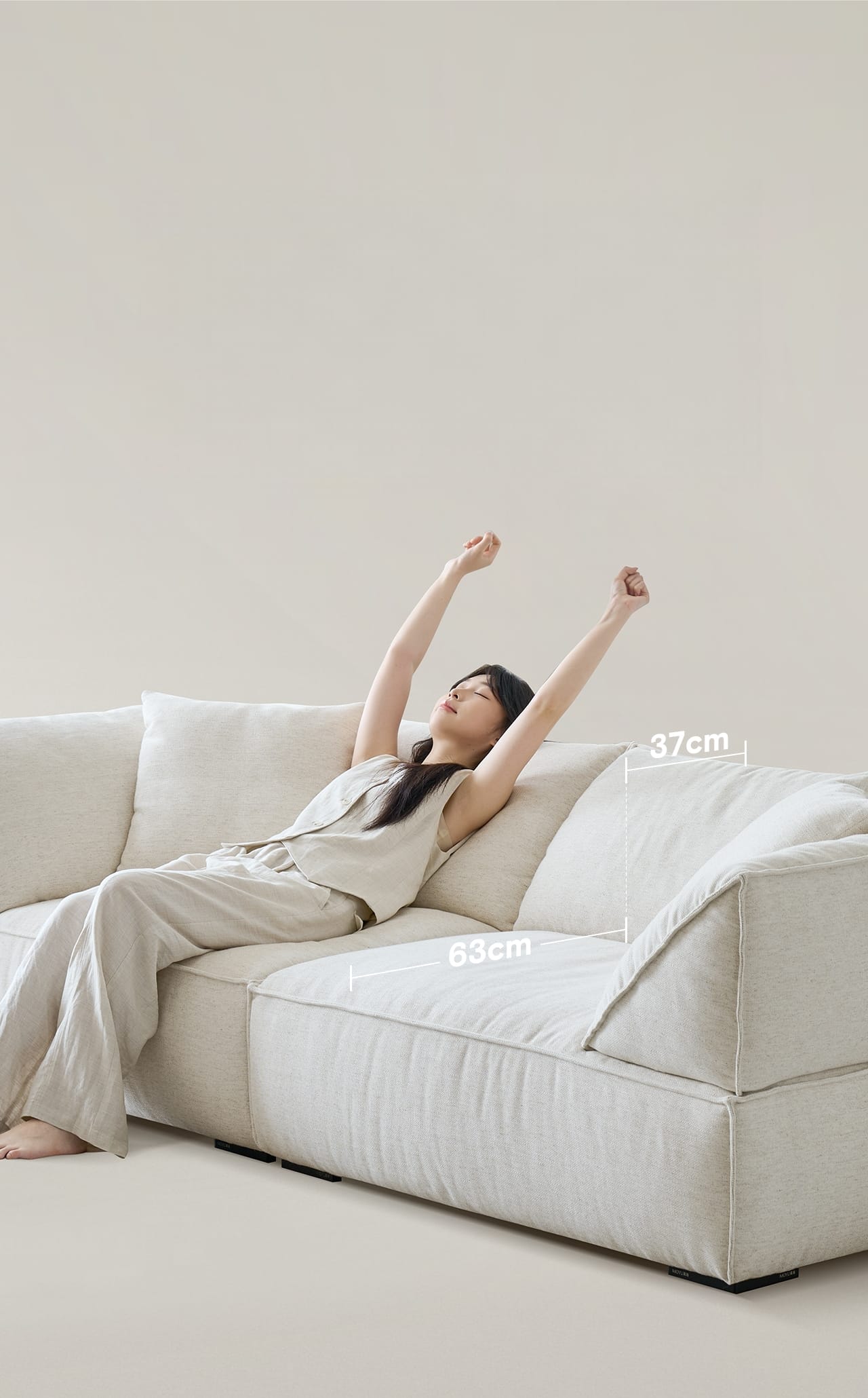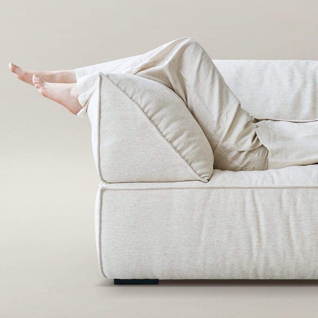 At the heart of the Livee Sofa’s ergonomic success is its 63CM seat depth, augmented by a 37CM angled backrest. This combination allows for a range of seating positions: