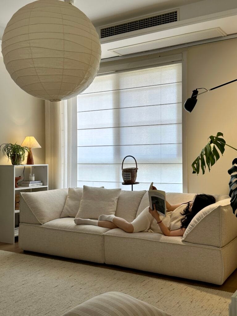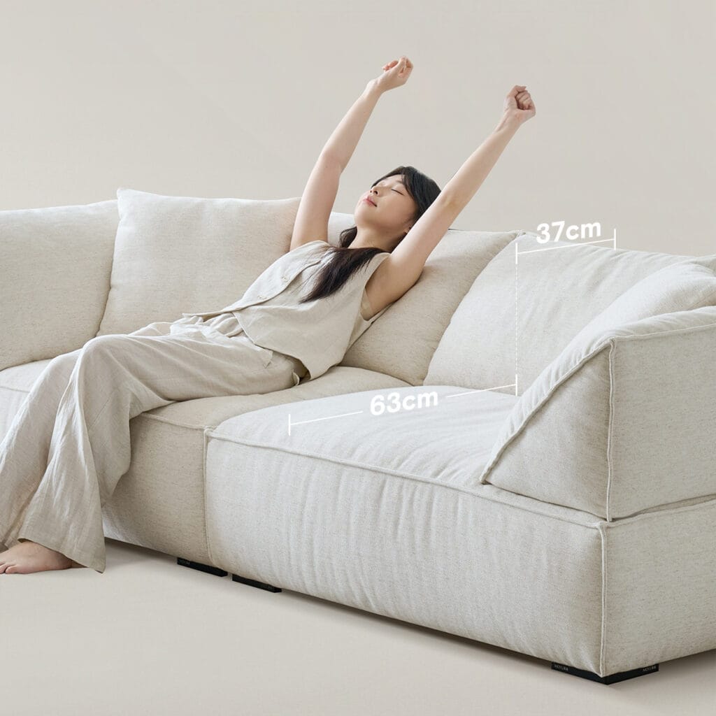 The depth of this sofa is really satisfying, it’s perfect for me who can sit up and down while watching TV! The color is also very high-end, and the beige color makes the entire living room super cozy. The inclination of the backrest and armrests is particularly suitable for ergonomics, and you can lean comfortably without a lumbar pillow