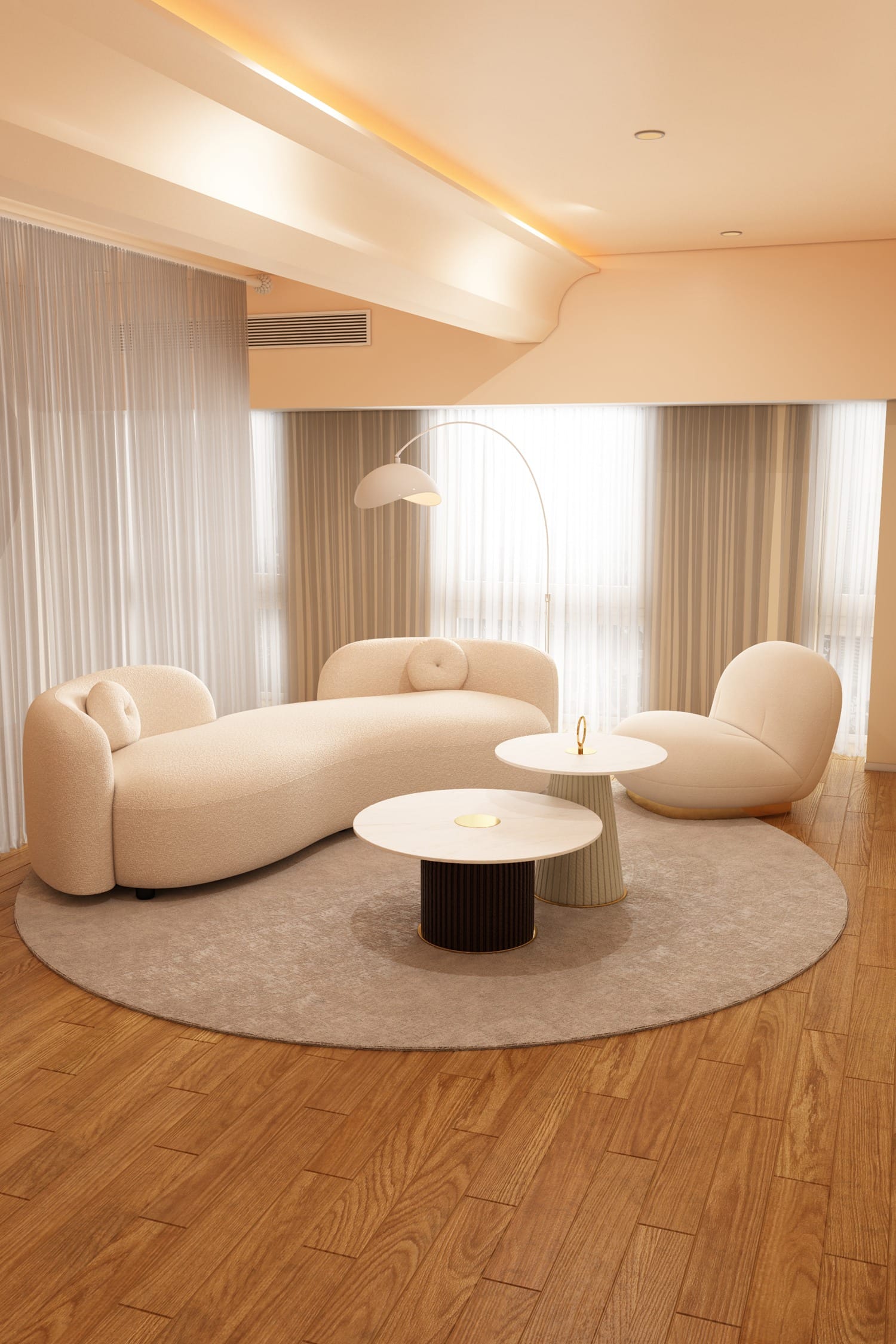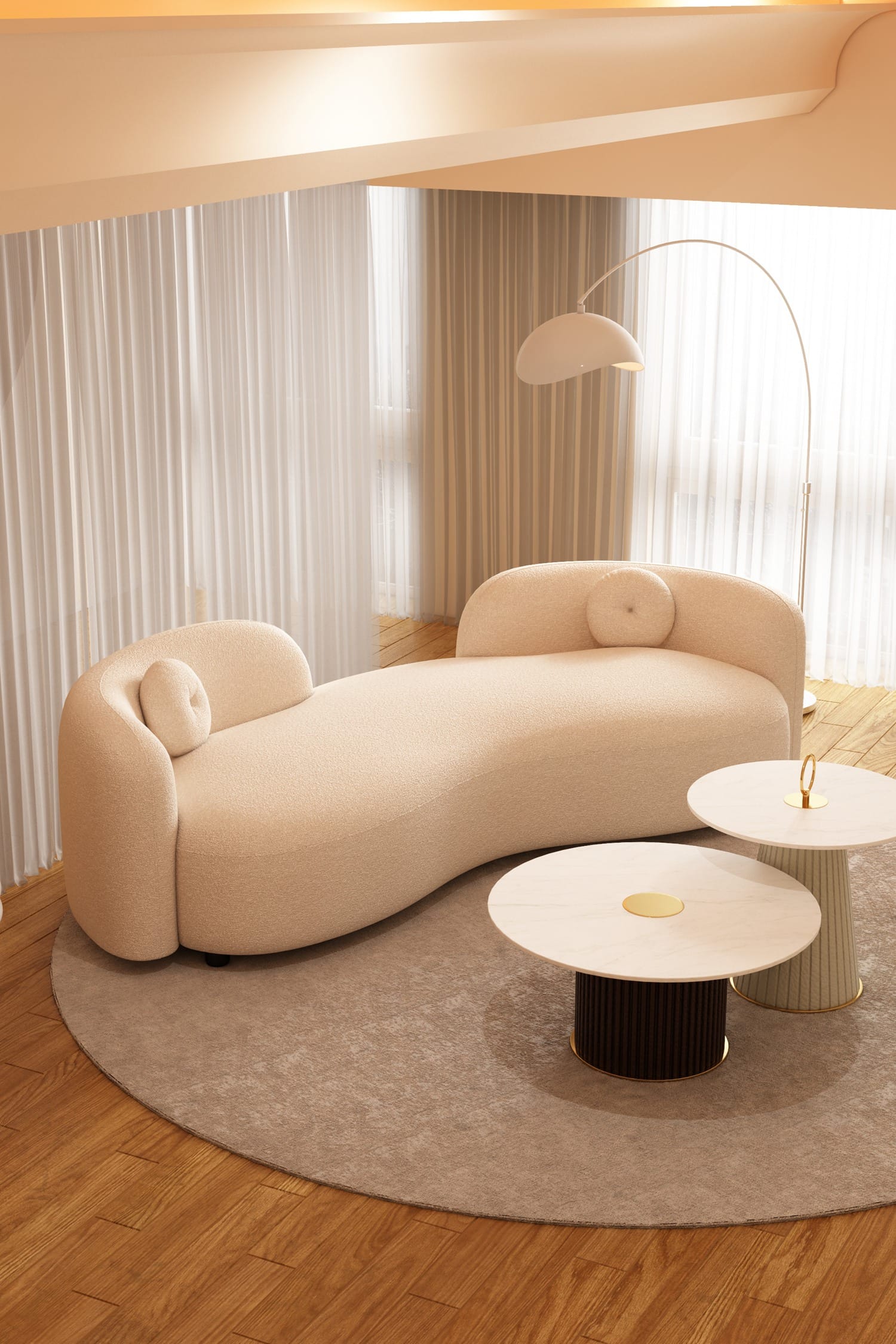 Case Study: A family in Shanghai (3 adults + 1 child) chose the 210cm three-seat Pea Sofa in off-white. They noted: “The fabric is easy to clean – our son spilled chocolate milk, and it wiped off in 2 minutes. The curve makes it easy for us to all sit together and watch movies.”