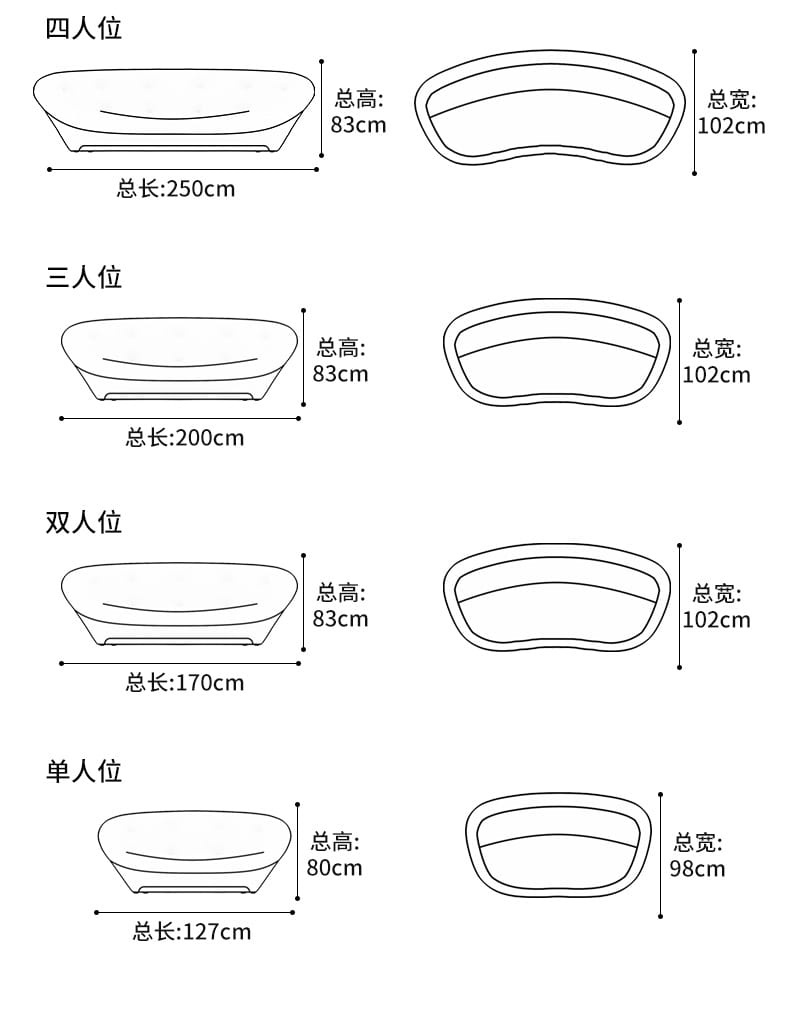 | For spacious living rooms or open-plan areas, the four-seat makes a grand statement. It comfortably hosts small gatherings, serving as the social heart of the home—yet its curved shape feels inviting, not imposing. |